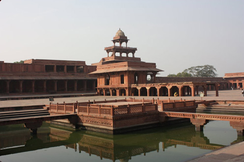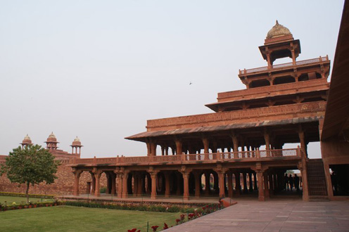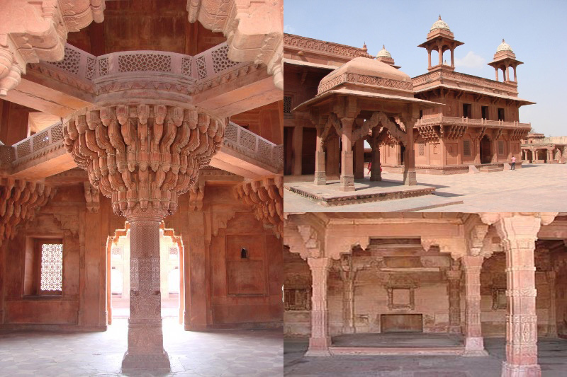 Дворец стоит на вершине холма, а путь к нему открывает парадная лестница, которая ведет к торжественному порталу. За воротами располагаются мечеть, покои императора, залы для приемов, конюшни, архивы, сады с бассейнами и дом для богословских диспутов. Акбар принимал в нем мудрецов от всех индийских религий. Посреди дворцового двора стоял храм объединённой религии. На его стенах имелись разнородные изображения – следы буддизма были перемешаны с индусскими и христианскими фрагментами. Это был красивейший город из красного песчаника, ставший всего через 10 лет жемчужиной Индии, «каменной сказкой, где переплелись мотивы разных народов». Здесь не было роскоши, всё дышало гармонией и светом. В покоях Джодбай были сделаны замечательные росписи, включающие многозначительные объединяющие символы. Акбар лично инспектировал строительство новой столицы, и из этого можно сделать вывод, что город полностью отвечал вкусам его самого и его мудрой жены. Когда увеличилось население новой столицы, оказалось, что в нем не хватает воды. Поэтому в 80-е годы двор Акбара покинул Фатехпур-Сикри. Возвышенная красота архитектурных сооружений Акбара до сих пор покоряет воображение как граждан страны, так и многочисленных туристов, ежегодно посещающих Индию.
