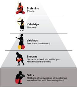 Эти три высшие варны противопоставлялись четвертой – шудрам, которые считались неравноправными членами общества и коим было предписано находиться в услужении первых трех варн. Шудры считались потомками покоренного населения, а не ариев, и имели свой символический цвет черный. Каждая варна была замкнутым сословием, принадлежность к которому определялась рождением. Переход из одной варны в другую запрещался. Браки между людьми из разных варн считались незаконными. Первые три варны были привилегированными, что подчеркивалось специальным обрядом посвящения, при котором как бы происходило второе рождение человека (отсюда и название дважды рожденные). Обряд проводился для детей брахманов в возрасте 8 лет, кшатриев 11 лет, вайшью - 12 лет. Предполагалось, что жизнь дважды рожденных делится на четыре периода: обучение, сознательная семейная жизнь, лесное отшельничество и жизнь бродячего аскета.