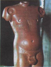 Но этот монотонный, как шахматная доска, город предоставлял жителям неслыханные по тем временам удобства. По всем улицам протекали арыки, и из них в дома (хотя около многих были обнаружены колодцы) подавалась вода. Но что еще важнее - каждый дом был связан с системой канализации, проложенной под землей в трубах из обожженного кирпича и выводящей все нечистоты за городскую черту. Это было гениальным инженерным решением, позволившим на довольно ограниченном пространстве собираться большим людским массам: в городе Хараппа, например, временами проживало около 100 тыс. человек, что по тем временам было огромной цифрой.
