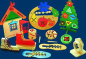 К примеру, при изучении букв и цифр применяются особые карточки, которые сделаны из шершавой бумаги наклеенной на дощечки. Обводя их пальчиками, ребенок запоминает не только саму букву или цифру, но и как ее писать. На сегодняшний день существует огромное количество учебных пособий изготовленных по методике Марии Монтессори: это различные карточки, вкладыши и пространственные игры.